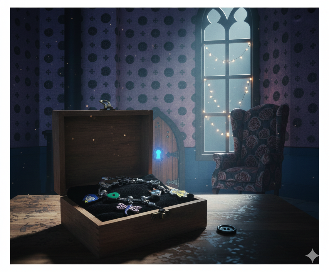 Why choose one mystery when you can carry them all? Our Pink Palace Artifact Bracelet is a wearable treasure map for the true Coraline devotee. Featuring the most iconic symbols from the Other World, this piece captures the whimsy, the danger, and the magic of the beloved stop-motion masterpiece.